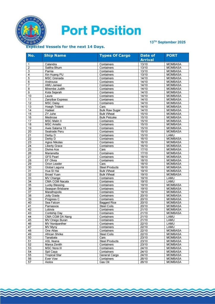 This initiative comes at a critical time as the Port of Mombasa is set to handle a total of 50 vessels over the next 14 days, with 34 container ships, 11 conventional cargo vessels, 4 car carriers, and 2 oil tankers scheduled to dock. Simultaneously, the Port of Lamu is expected to receive 7 container vessels, signaling a significant uptick in maritime activity and the urgency to clear existing backlogs.